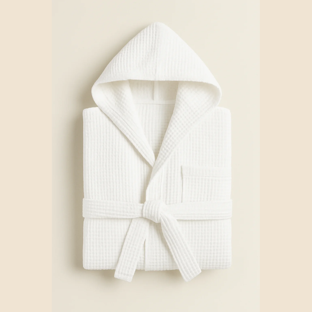 Il particolare intreccio a nido d’api garantisce una sensazione piacevole sulla pelle, mantenendo al tempo stesso una struttura resistente ai lavaggi frequenti. Il design essenziale e raffinato lo rende perfetto per camere hotel, spa, centri benessere e resort, assicurando un’immagine curata e professionale.