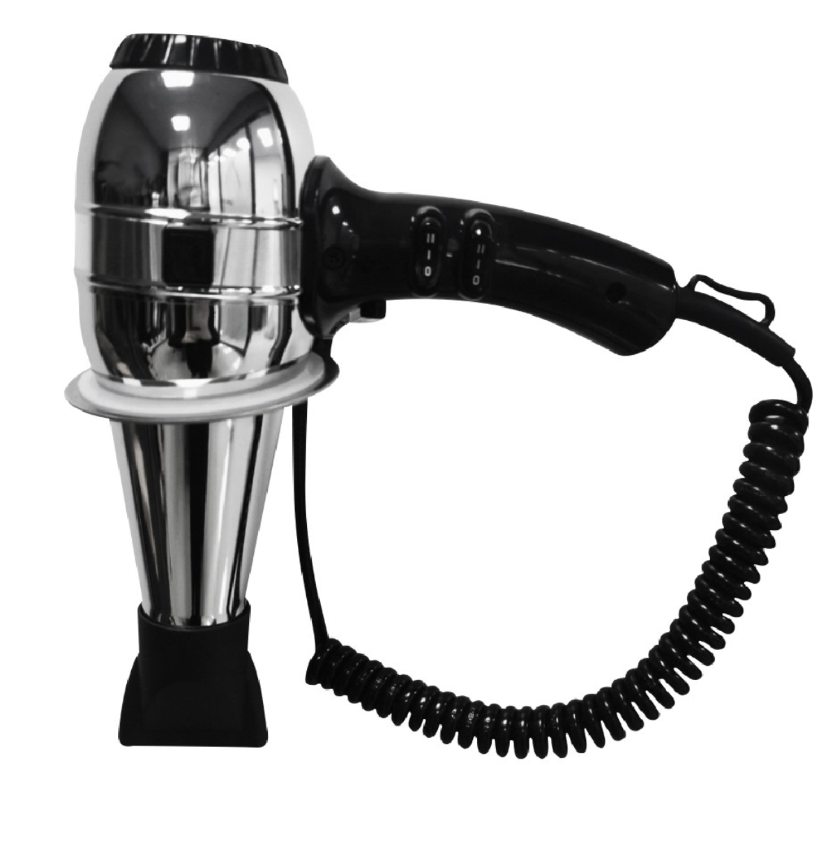 Questo asciugacapelli da cassetto, caratterizzato da una elegante finitura cromata, è pensato specificamente per le esigenze degli hotel, offrendo un design compatto e funzionale.