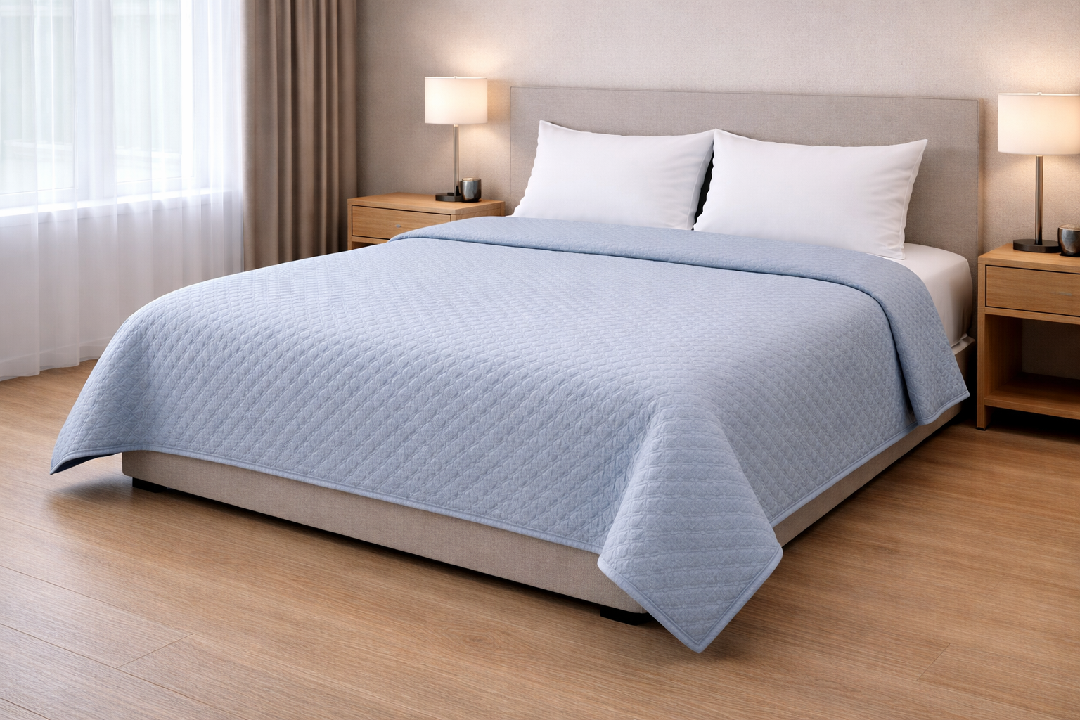 Copriletto Seersucker ideale per l’utilizzo professionale in hotel, B&B, agriturismi e strutture ricettive.