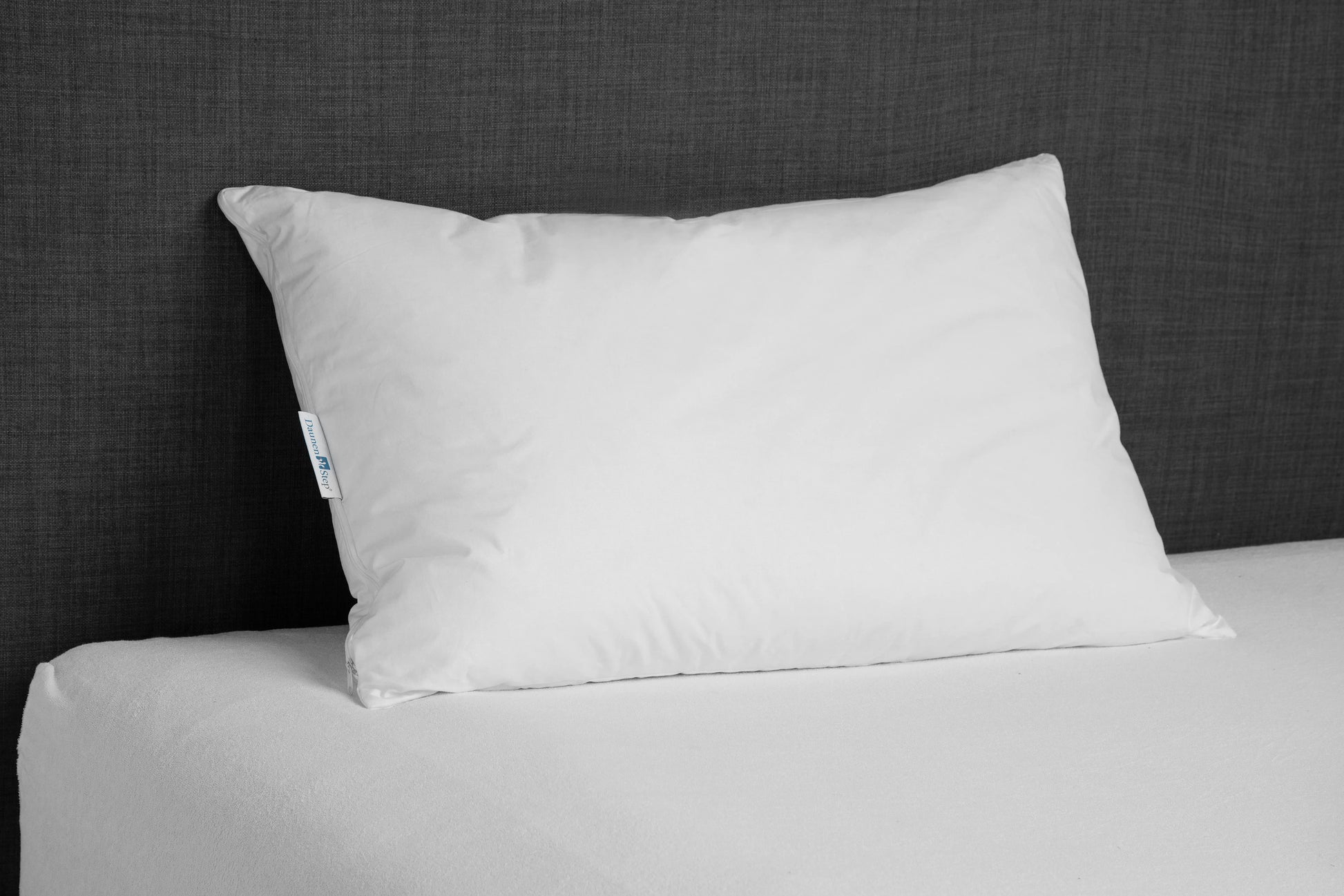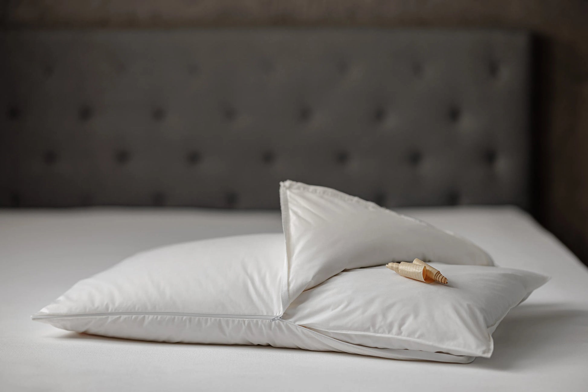 Un cuscino con nucleo in pura lana vergine e fiocchi di legno cirmolo, avvolto da un guscio sfoderabile in soffice piumino.